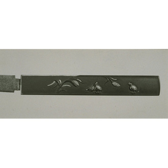 Knife (Kozuka) with Quails and Chestnuts in High Relief Carving, Signed Kojo