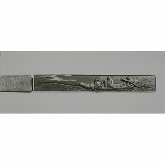 Knife (Kozuka) with Scene of a Boat Excursion in High Relief Carving, Signed Kenjo