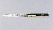 Knife Handle (<i>Kozuka</i>) with Blade Depicting Maples, Arabesques, and Patterns (紅葉唐草文様図小柄)