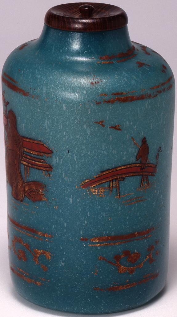 Milky Blue Small Pot with Landscape of Building in Gold Mitsudae