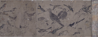 Scroll of Bird, Fish, and Plant Sketches