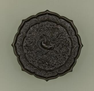 Octofoil Mirror with Auspicious Flowers and a Bird-Shaped Knob