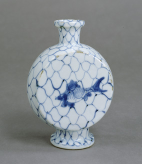 Sake Bottle with a Net and Fish