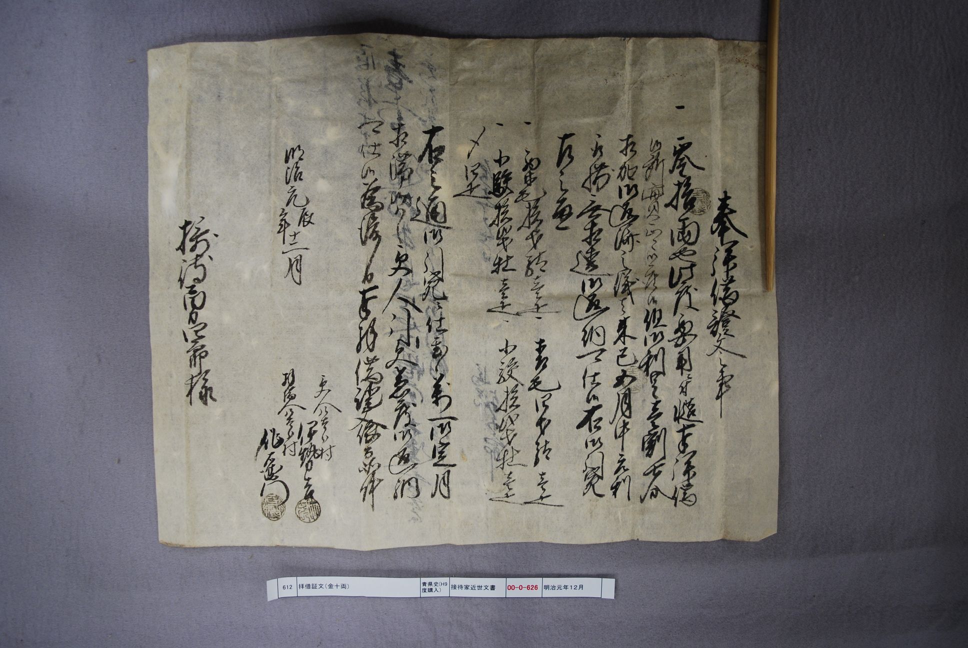 奉拝借証文之事(金十両)