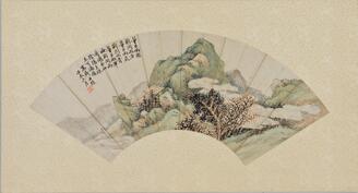 Landscape on Fan with Chinese Poetry