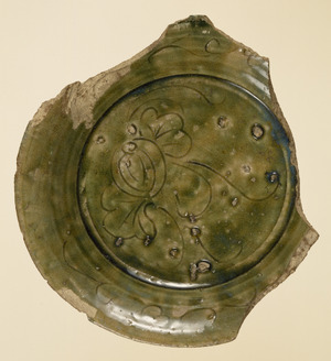 Fragment of Oribe Bowl with Melon in Green Glaze (Mino Ware)