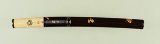 Tea utensil box with design of sword guards and writing utensils