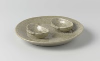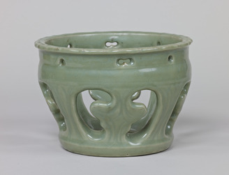 Sake Stand, Kasugayama Ware/Crysanthemums design with celadon glaze