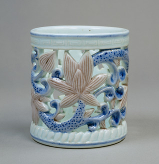 Porcelain Brush Holder with Openwork Design of Grape Vines