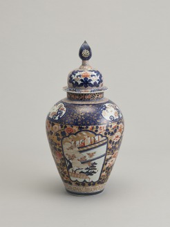 色絵婦人桜樹図有蓋壺