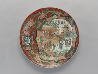 色絵婦人図唐花文大皿