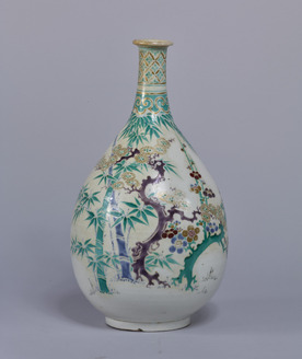 Sake Bottle with Plum, Bamboo, and Pine Motifs