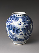 Covered jar with design of wisteria, grapes, and landscape scenes
