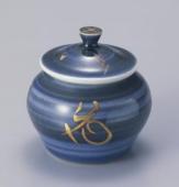 Small jar, character "Hana (flower)", cobalt glaze and gold