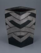 Square Jar, silver pattern on black glaze