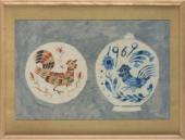 Dishes, Chinese flower and arabesque design in overglaze enamel