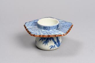 染付六稜花形盃台