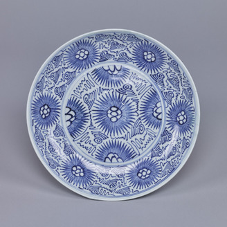 Large plate, camellia design, underglaze blue
