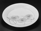 Dish, Peony and stylized wave design in overglaze enamel