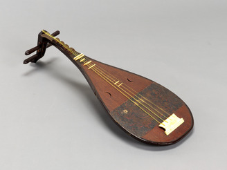 (Copy)Five-stringed Biwa(musical instrument), Design of camel rider in mother-of-pearl inlay