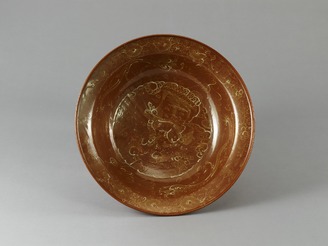 柿釉麒麟雲龍文大盤(餅花手)