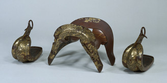 Saddle and Stirrups with Hawks and Plum Blossoms