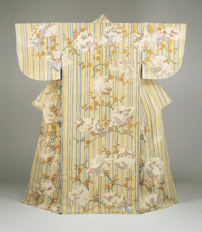 Kimono (Kosode) with Stripes, Windows, and Plum Tree Branches