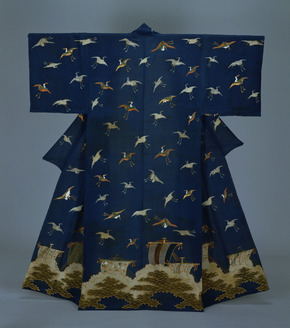 Kimono (Kosode) with Sailboats and Cranes