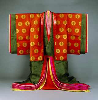 Karaginu (Informal Court Robe) with Cloud and Crane Roundels on Purple Linked Tortoiseshell Ground