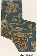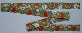 Sage-obi (Narrow Sash) with Vapors and Long-tailed Cock Medallions in Pattern-Weave on Satin Ground