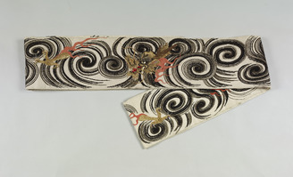 Obi Sash (Kabuki costume), Cloud and dragon design on white nanako-type weave