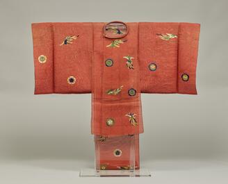 Robe with Chrysanthemums, Peonies, Clouds, and Long-Tailed Birds