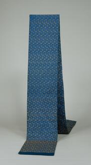 Obi Sash, Lozenge, butterfly, and paulownia design on indigo ground