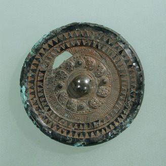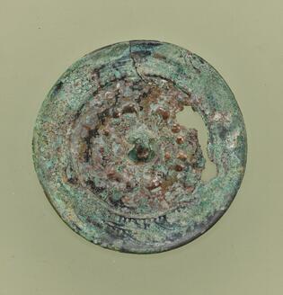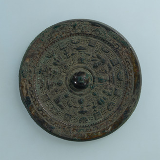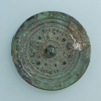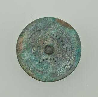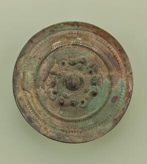 Mirror with a Pictorial Band, Ring-Shaped Bosses, Deities, and Beasts