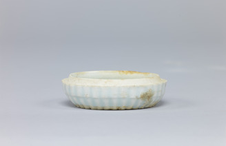 青磁印花菊花文輪花皿