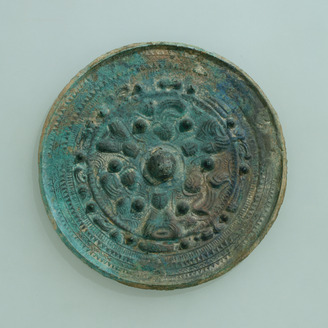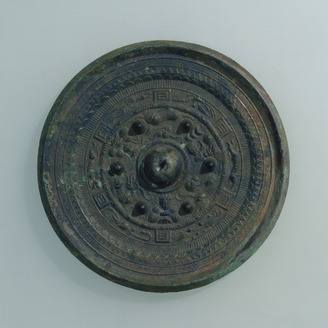 Mirror with a Pictorial Band, Ring-Shaped Bosses, Deities, and Beasts
