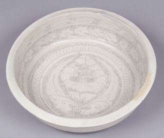 Dish with Carved Peonies on White Comb Marked Ground Cizhou ware