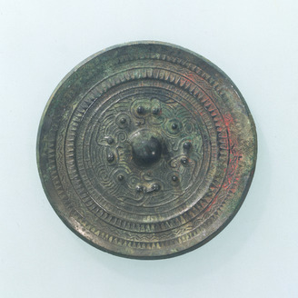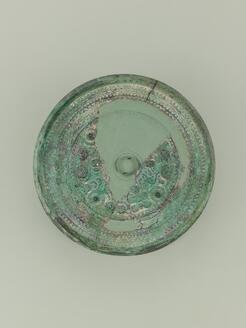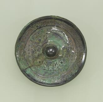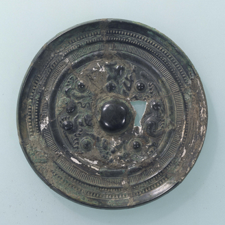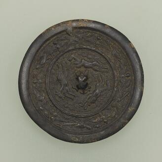 Slant-Rimmed Mirror with Two Deities and Two Beasts