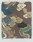 Fragment of a Pao Garment, Design of paired cranes and clouds in brocade weave on a white ground