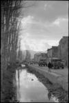 New Zealanders stroll pass women washing clothes in a stream near ancient wall in Alife in Italy, World War ...