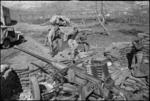 J C Nuttall, NZ Divisional Artillery, laying a gun on the Cassino Front, Italy, World War II - Photograph ta...