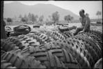 J McLennan and R Gibbs with large sized tyre for 2 NZ Division vehicle, Cassino Front, Italy, World War II -...