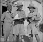 Officers of New Zealand Railway Operating Unit work out control schedules in the Western Desert, World War II