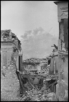 Behind ruined buildings of Cevaro smoke rises from the bombs bursting on Cassino, Italy, World War II - Phot...