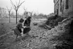 Children standing atop ruins of the demolished village of Gessopalena, Italy
