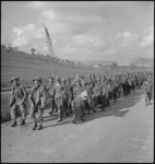 Newly captured prisoners being marched to rear from Sangro River area, Italy, World War II - Photograph take...
