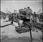 Uploading a locomotive from a lighter to the wharf at a Syrian port - Photograph taken by H Paton