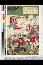 西郷隆盛大軍ヲ引卒シ肥後国熊本城ヲ陥ト安政橋ニ到所城兵モ討テ出両軍於橋上ニ大激戦ニ及之図