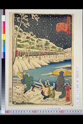 江戸名所道戯尽 十四 芝赤羽橋の雪中