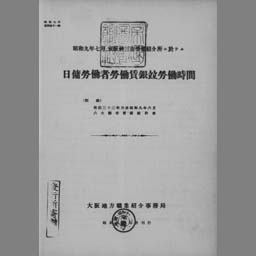 Shouwa 9nen 7gatsu keihanshin 3shi roudou shoukaijo ni okeru hiyatoi roudousha roudou chingin narabini roudou jikan : fu meiji 33nen naishi shouwa 9nen 6gatsu 6daitoshi chingin toukeihyou